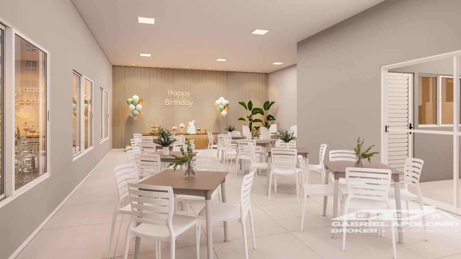 Salão de festas com churrasqueira